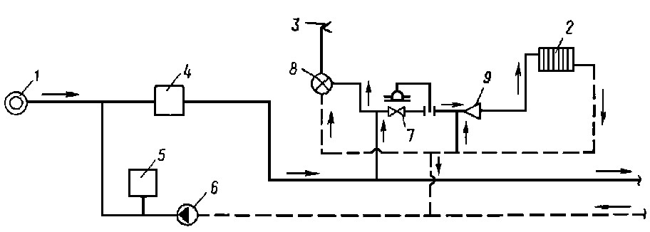 Из точки Из найденной таким образом точки пересечения опускаем перпендикуляр на ось ординат и определяем величину превышения температуры воды на входе в трубопровод над температурой воздуха: