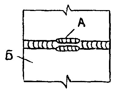 Рис. 2. Отдельно стоящий тросовый молниеотвод. Обозначения те же, что и на рис. 1 Указанные молниеотводы должны обеспечивать зону защиты типа А в соответствии с требованиями приложения 3. При этом обеспечивается удаление элементов молниеотводов от защищаемого объекта и подземных металлических коммуникаций в соответствии с пп. 2.3, 2.4, 2.5. 2.2. Выбор заземлителя защиты от прямых ударов молнии (естественного или искусственного) определяется требованиями п. 1.8. При этом для отдельно стоящих молниеотводов приемлемыми являются следующие конструкции заземлителей (табл. 2) : а) один (и более) железобетонный подножник длиной не менее 2 м или одна (и более) железобетонная свая длиной не менее 5 м; б) одна (и более) заглубленная в землю не менее чем на 5 м стойка железобетонной опоры диаметром не менее 0,25 м; в) железобетонный фундамент произвольной формы с площадью поверхности контакта с землей не менее 10 м2; г) искусственный заземлитель, состоящий из трех и более вертикальных электродов длиной не менее 3 м, объединенных горизонтальным электродом, при расстоянии между вертикальными электродами не менее 5 м. Минимальные сечения (диаметры) электродов определяются по табл. 3. Таблица 2